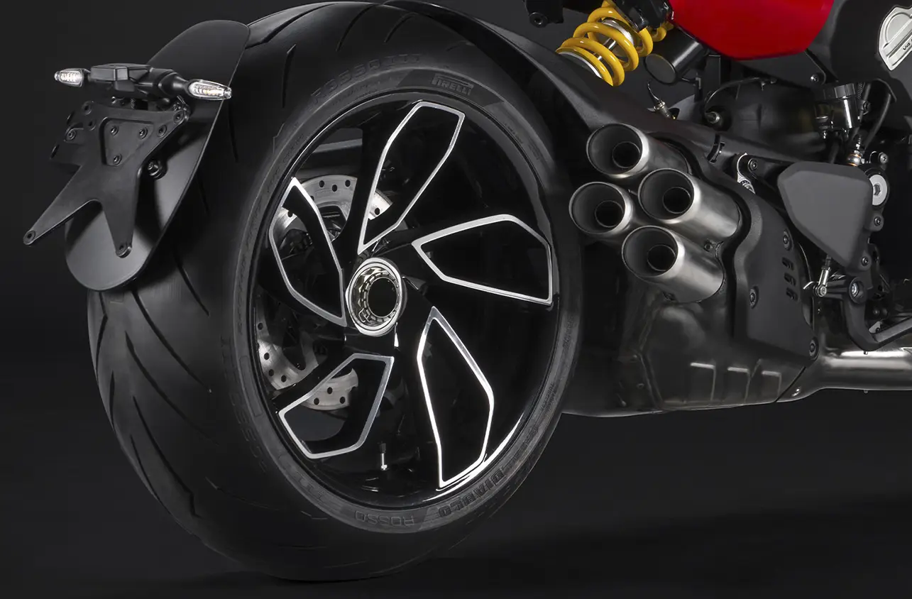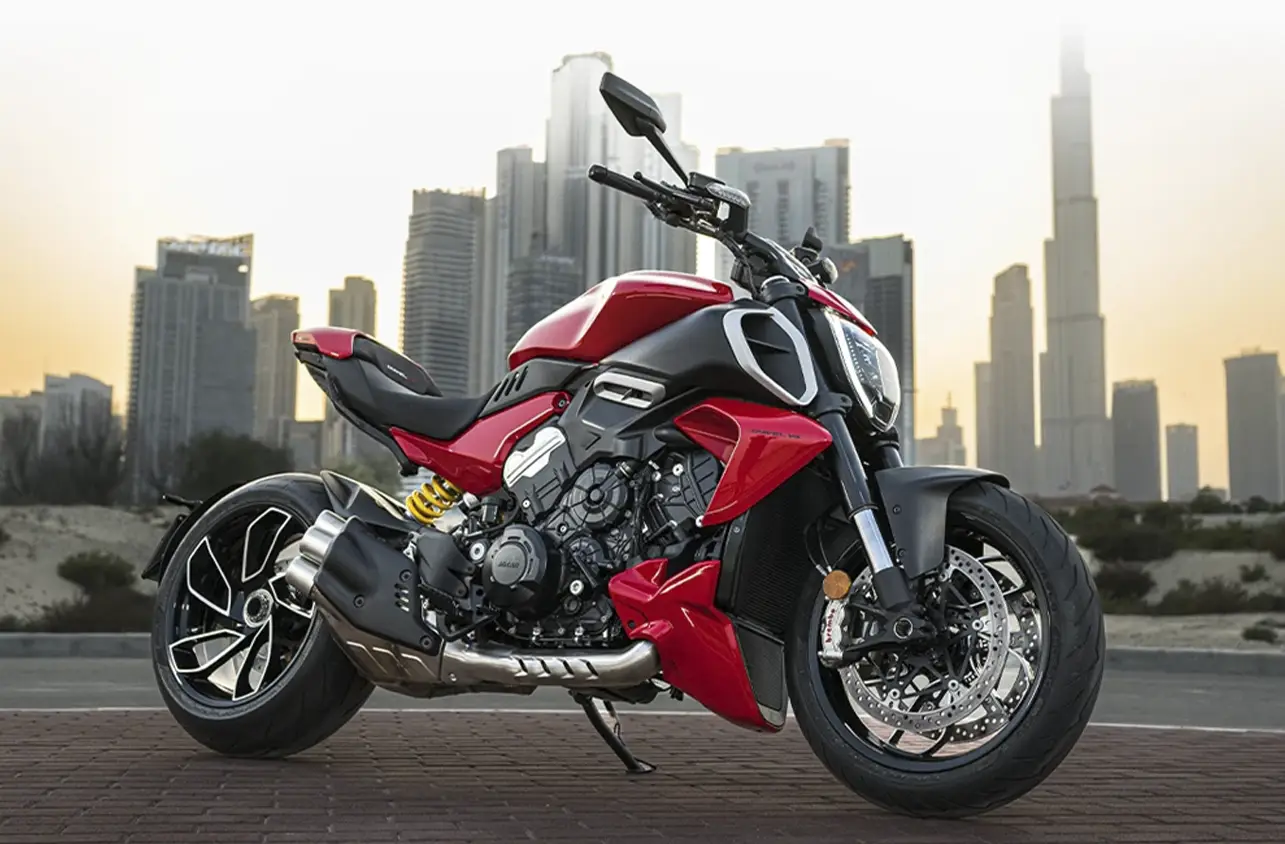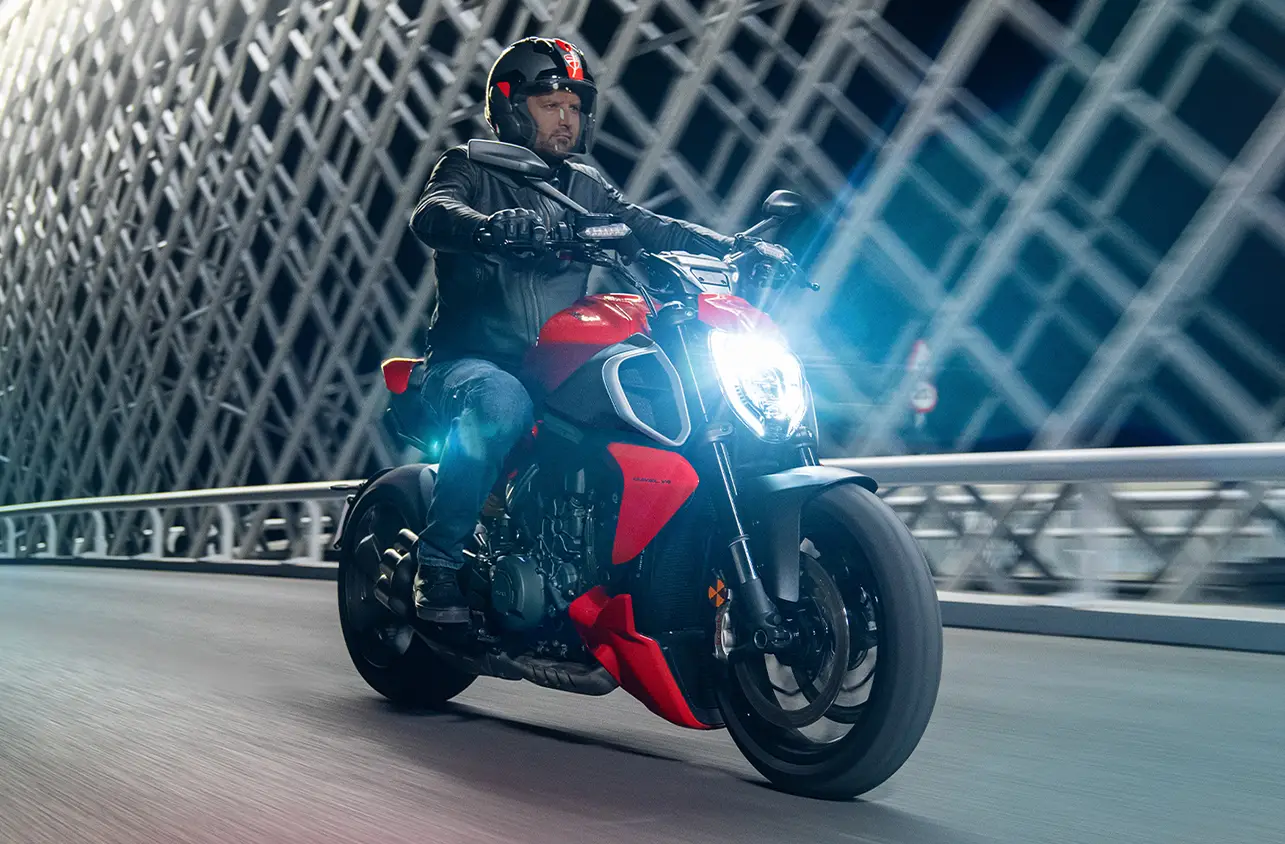 Modos de pilotagem, modos de potência, ABS com assistência em curvas, controle de tração Ducati, luz de freio Ducati.