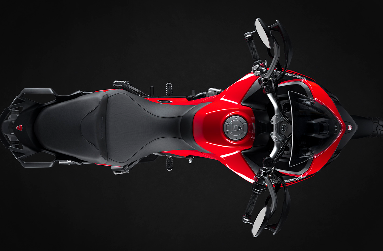 Faróis full led com sistema Ducati Cornering Lights, que acende conforme inclina moto na curva