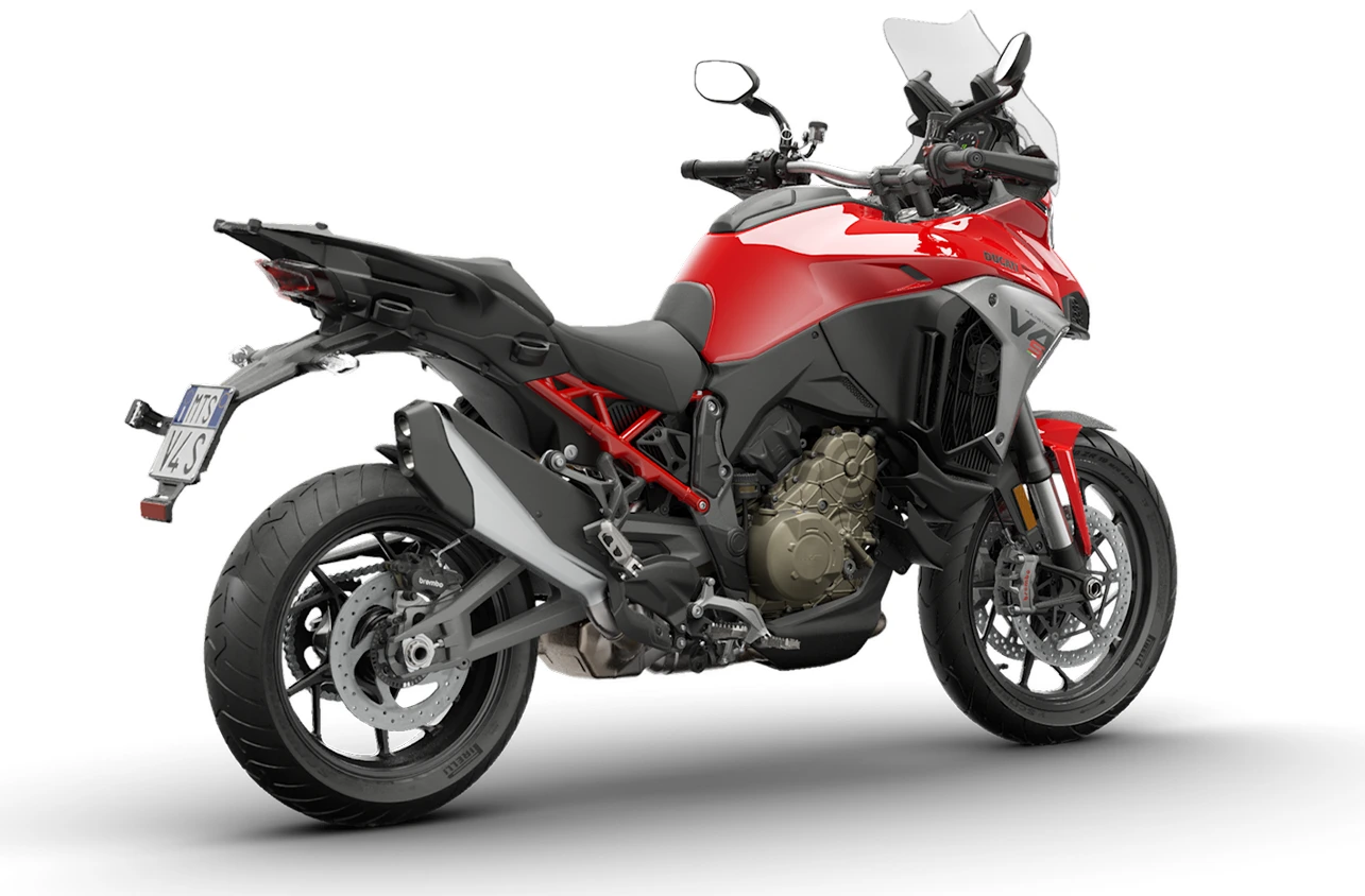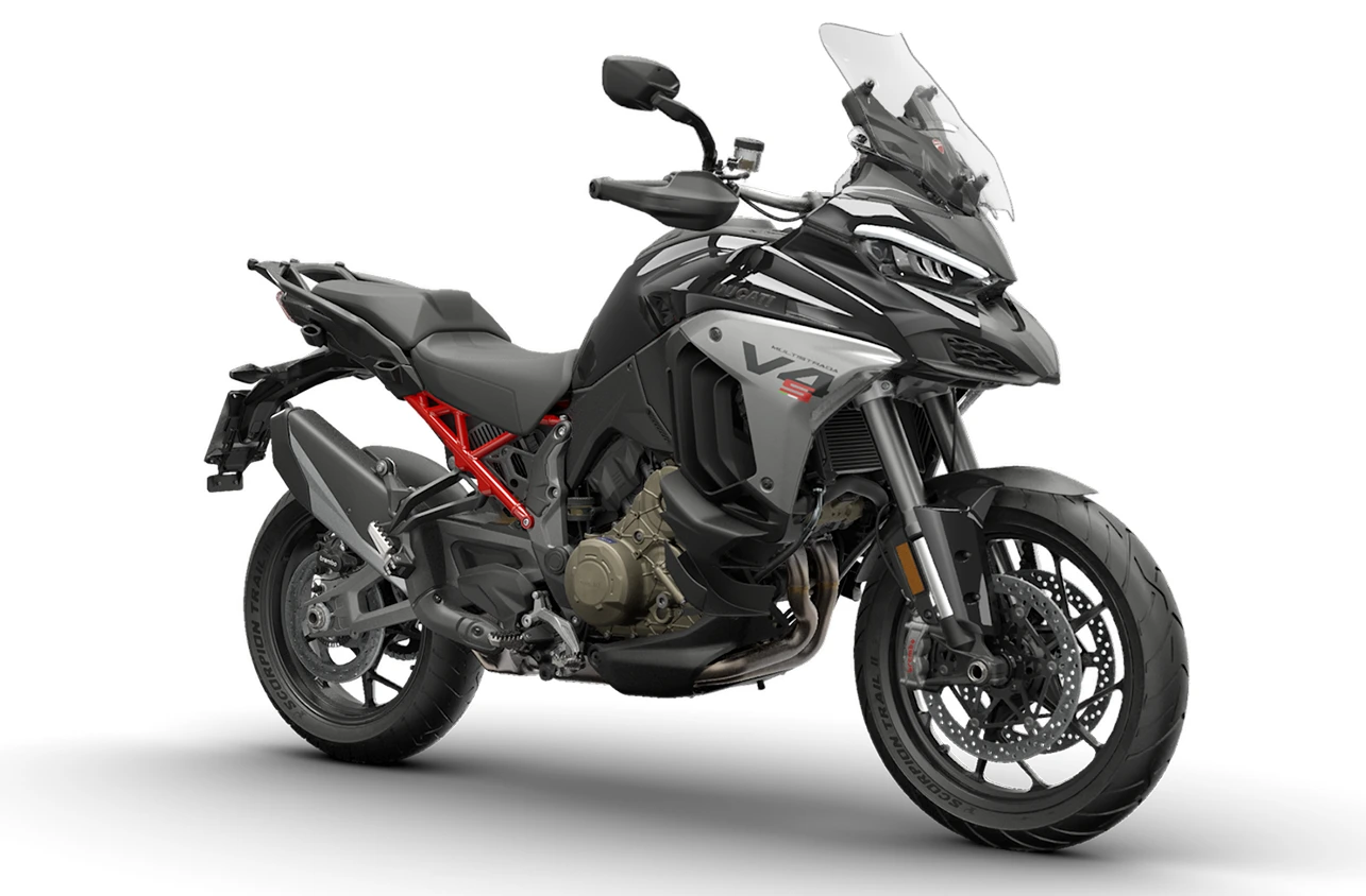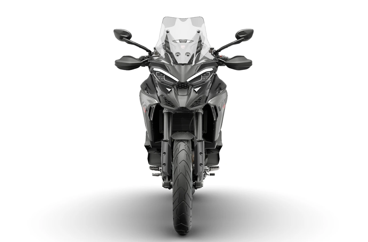 Ducati Skyhook Suspension, pre-carga minima, Ducati Quick Shift, Cruise control, Hands-free, interruptores de guidão iluminados, 6.5" TFT display colorido com Ducati Connect e sistema de navegação de mapa completo, farol Full LED.