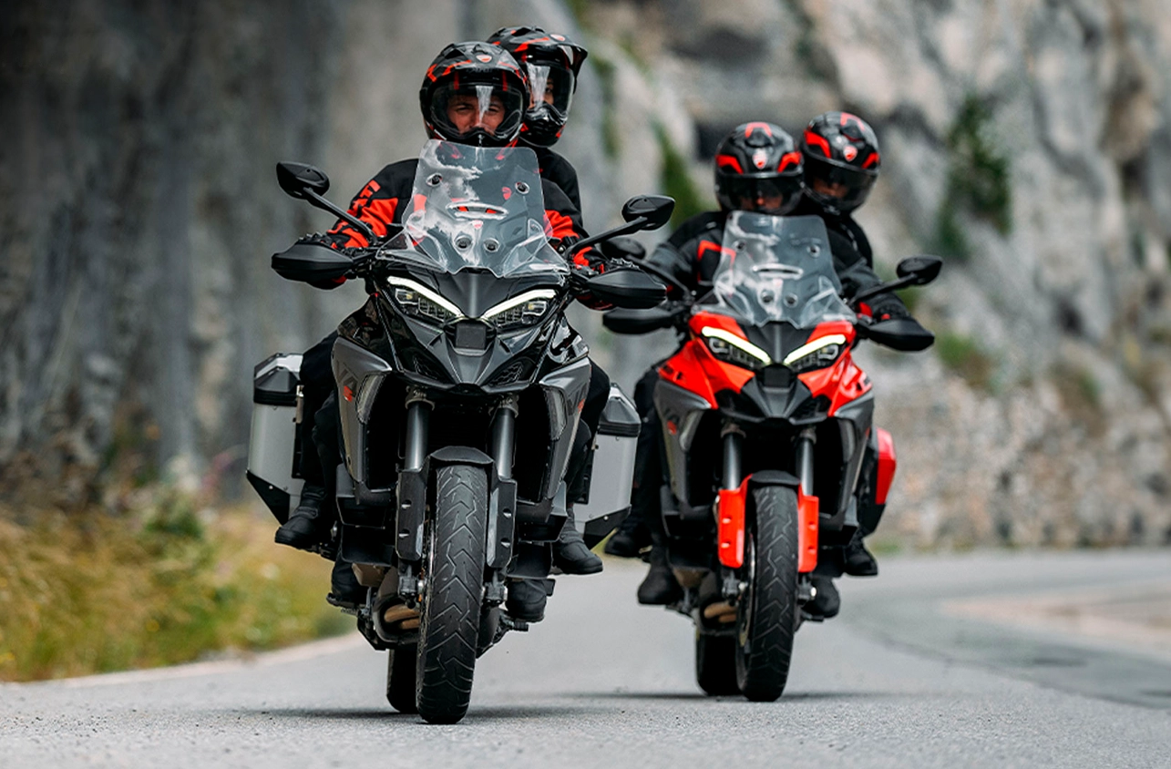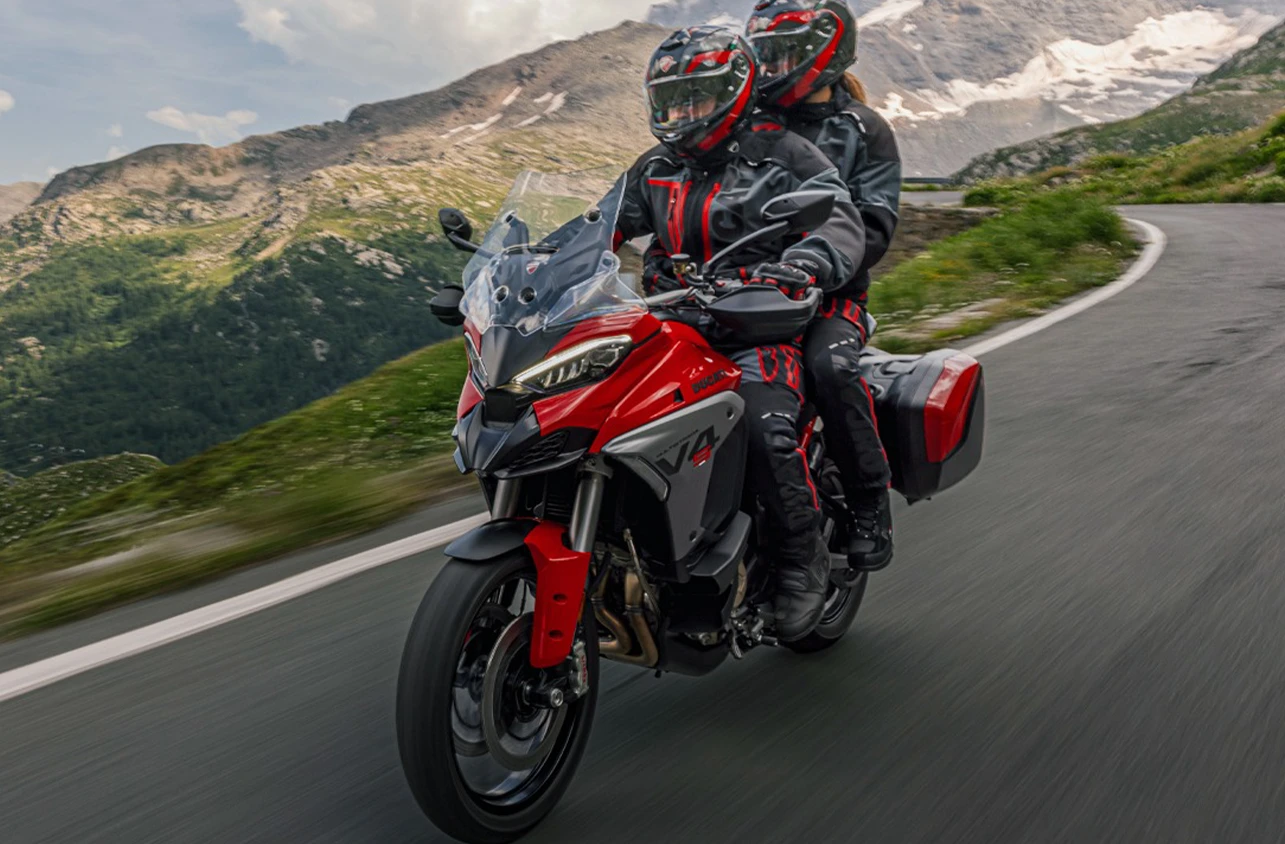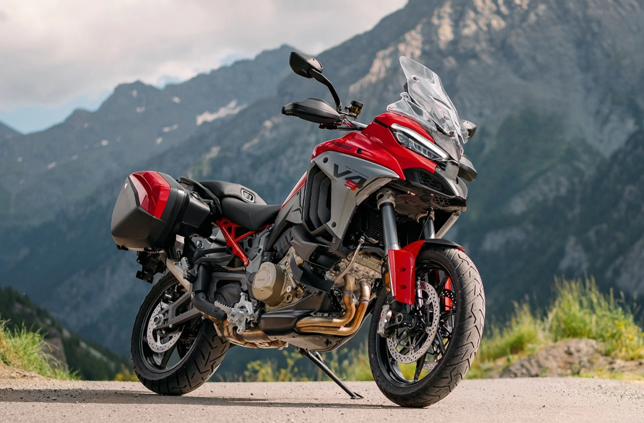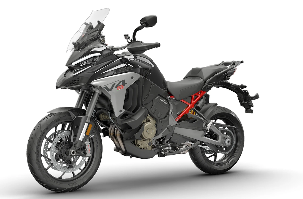 Ducati Skyhook Suspension, pre-carga minima, Ducati Quick Shift, Cruise control, Hands-free, interruptores de guidão iluminados, 6.5" TFT display colorido com Ducati Connect e sistema de navegação de mapa completo, farol Full LED.